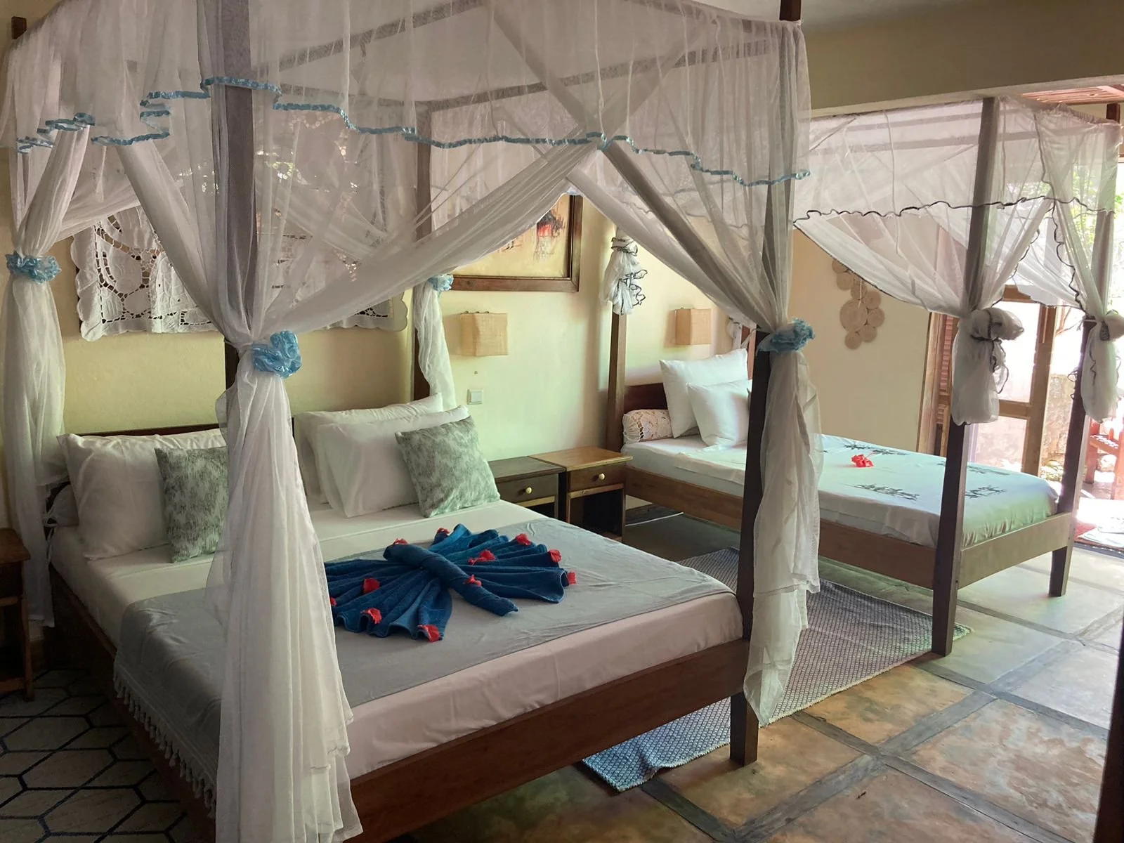 All rooms include quality linen and towels, beach towels, mosquito nets, fans, hot-water showers, daily cleaning and drinking water replenished daily.