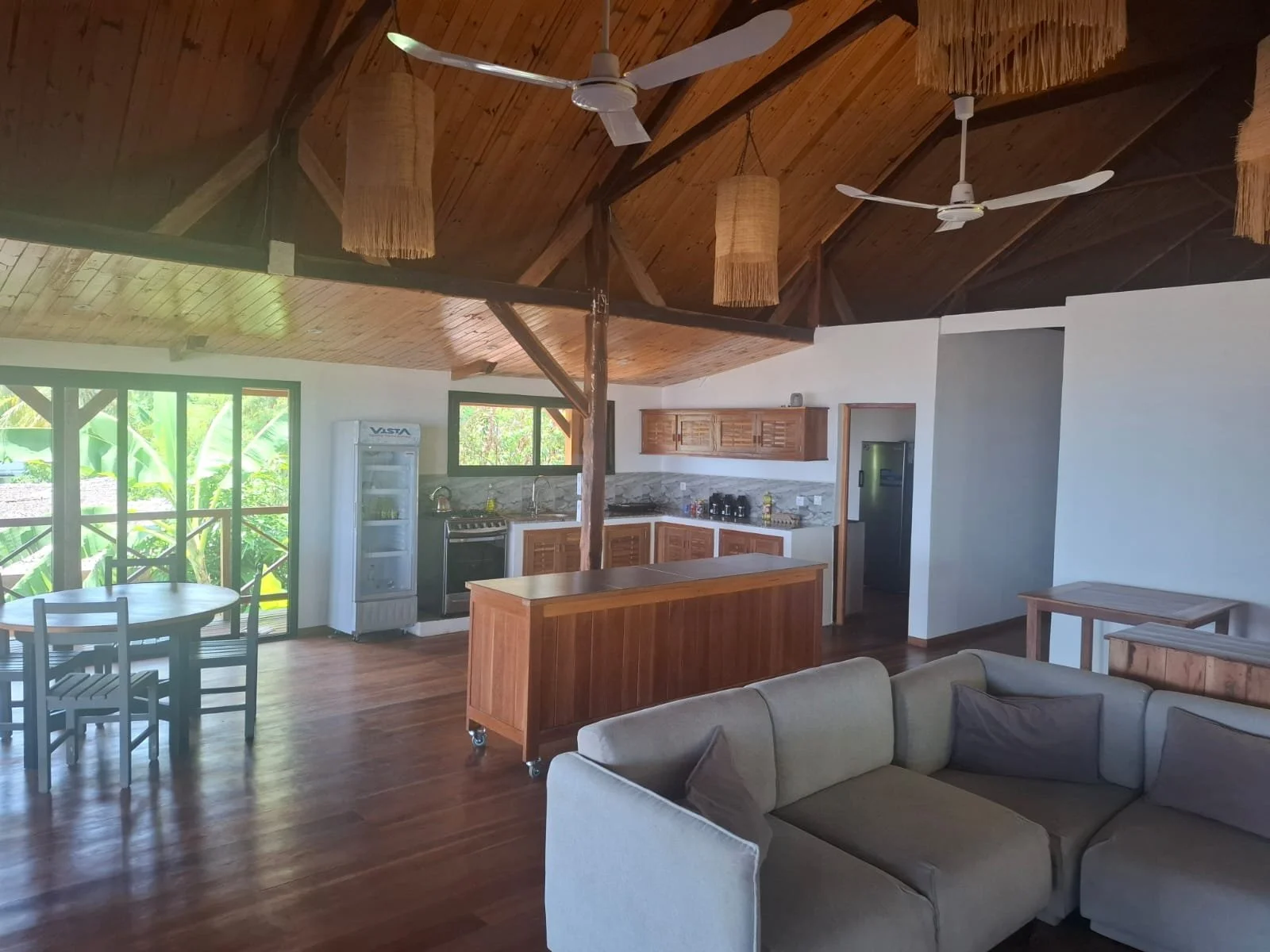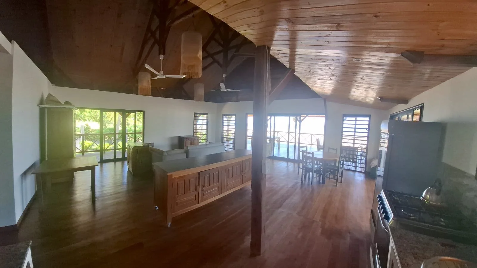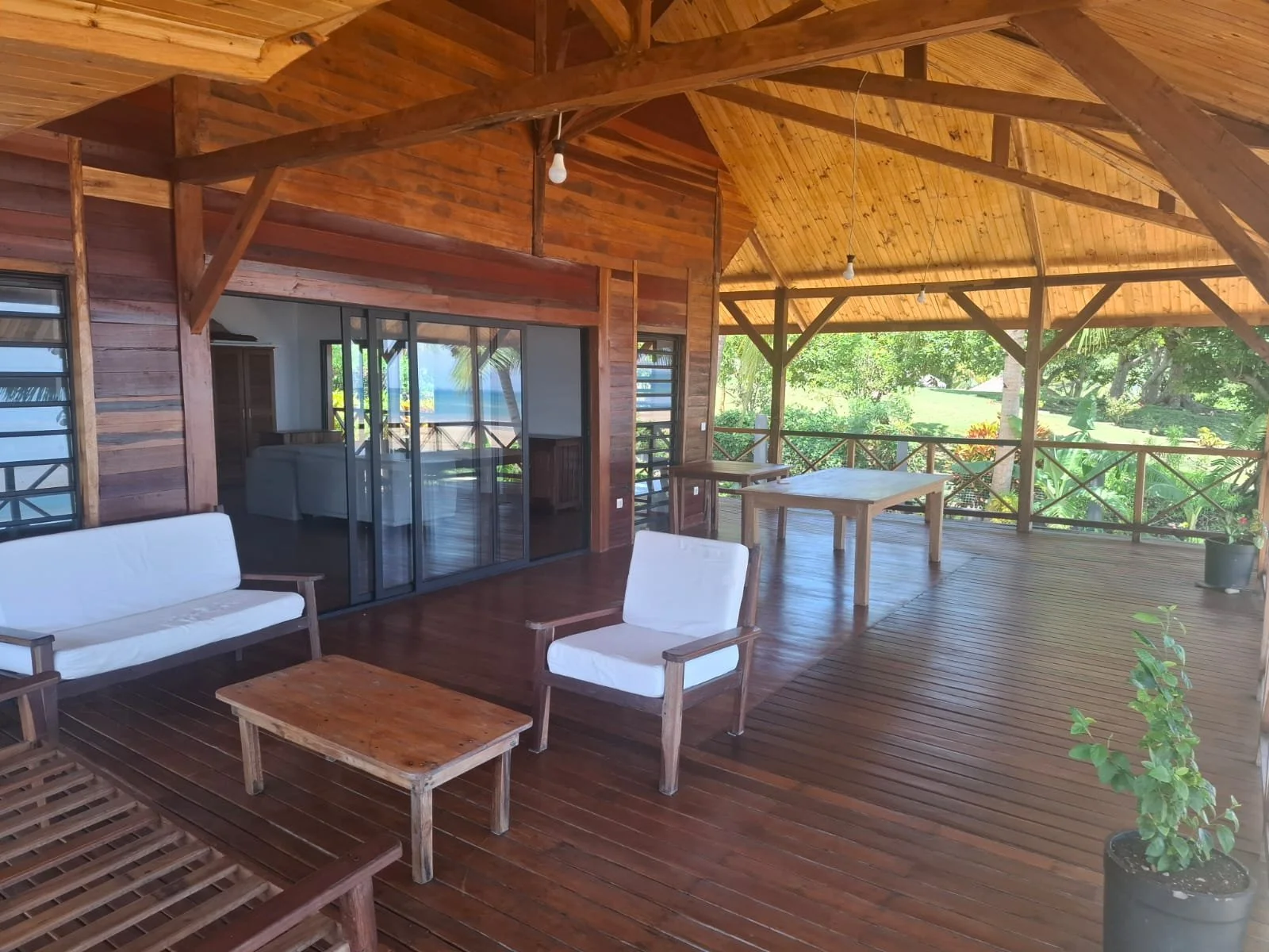 At the heart of the villa is an open-plan lounge and kitchen, creating an easy, social space that flows seamlessly out onto a large L-shaped deck. This generous outdoor living area is designed for long, lazy days — whether lounging with a book, gathering for drinks, or simply watching the changing colours of the sea.